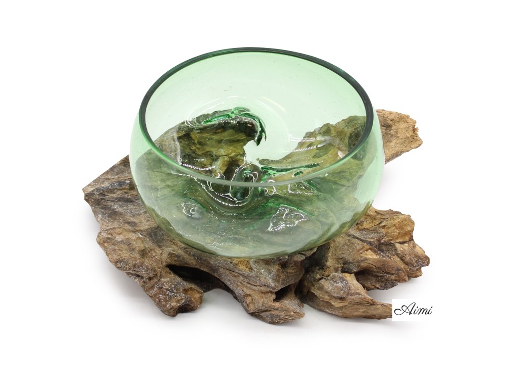 Recyklované Sklo z Pivových Fľiaš - Veľká Široká Miska na Dreve