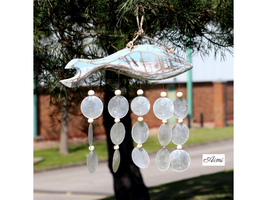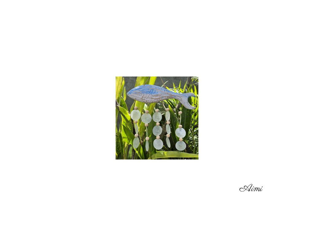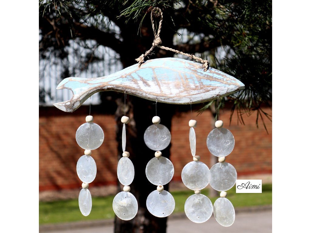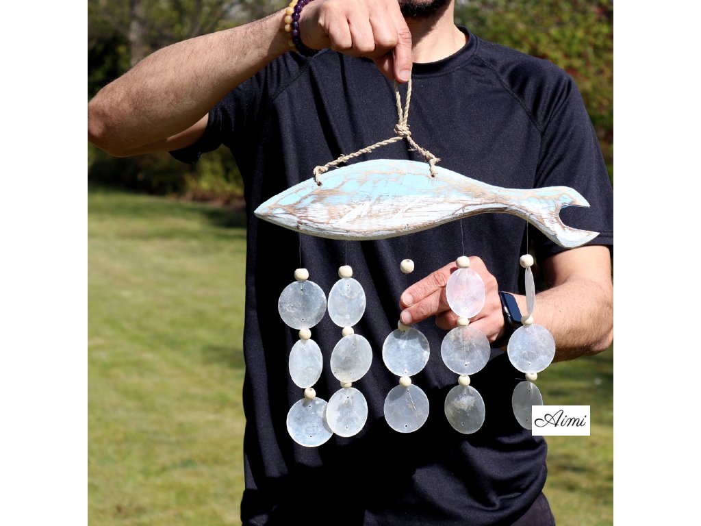 Nadčasová, upokojujúca a ľahko kombinovateľná – táto závesná dekorácia prináša do každého priestoru nádych prímorskej elegancie. Ručne vyrezávaná rybka z naplaveného dreva je jemne natretá vo vypraných modrých tónoch a doplnená o zavesené biele mušle capiz, ktoré spolu vytvárajú efektný vrstvený vzhľad. Mušle vydávajú príjemný prírodný zvuk, ktorý podporuje pocit pokoja a relaxácie.