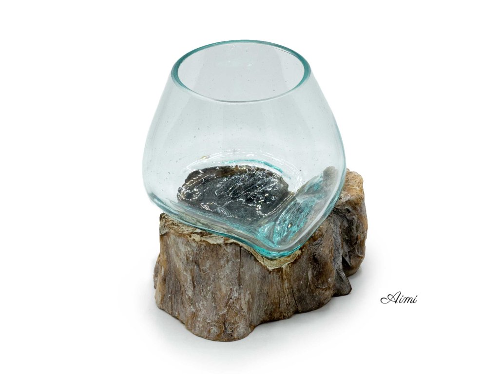 Roztavené Sklo na Dreve - Biela Vymývaná - Stredná Misa