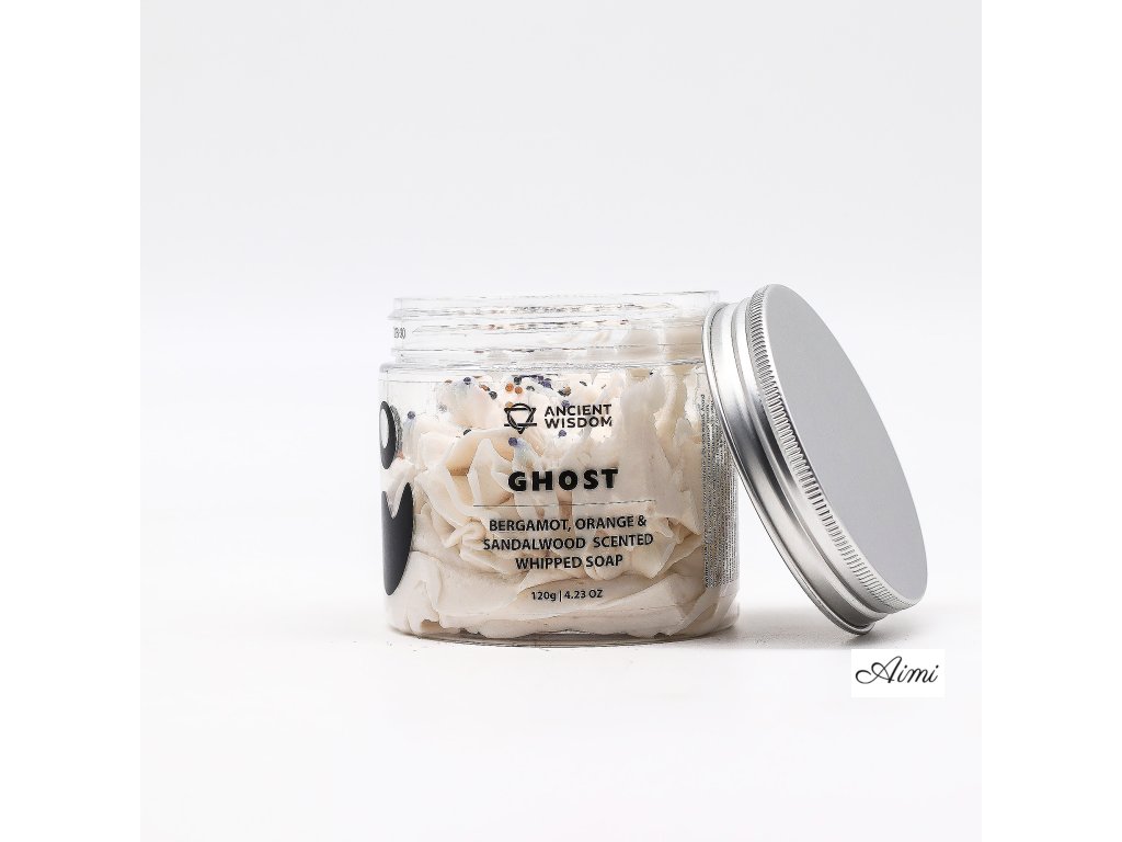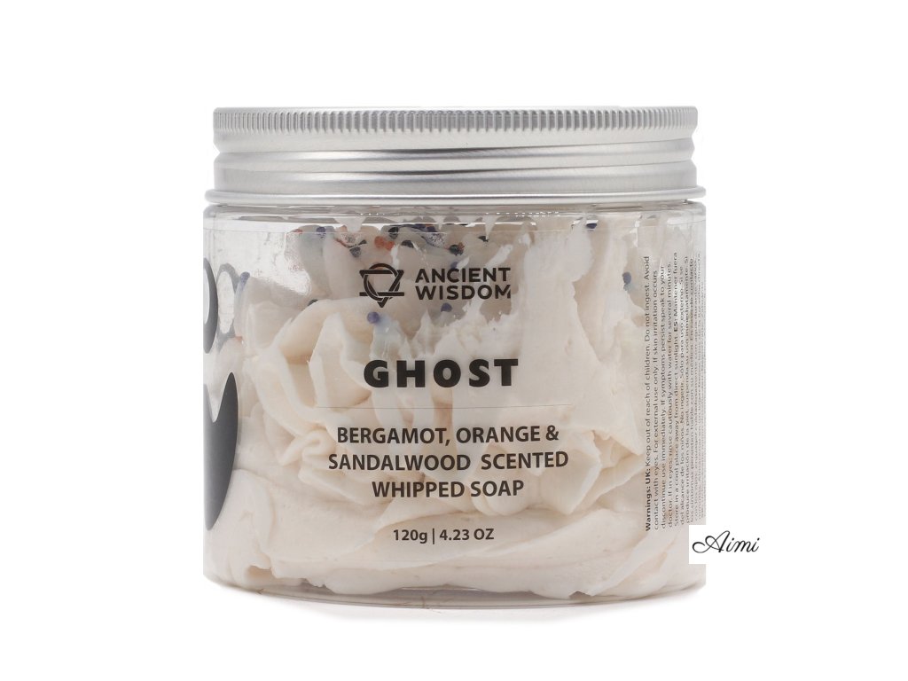 Duch– Šľahané mydlo 120 g je luxusný, nadýchaný krémový čistiaci prostriedok navrhnutý tak, aby očaril zmysly. Toto odvážne, halloweenske mydlo prináša pôsobivú vôňu, v ktorej sa mieša pikantné čierne korenie, kardamóm a bergamot s jemnými tónmi pomarančového kvetu a tiramisu. Vôňa sa postupne usádza do hrejivých základných tónov santalového dreva, tonka bôbu a sladkého dreva, čím vytvára hlboko upokojujúci zážitok.