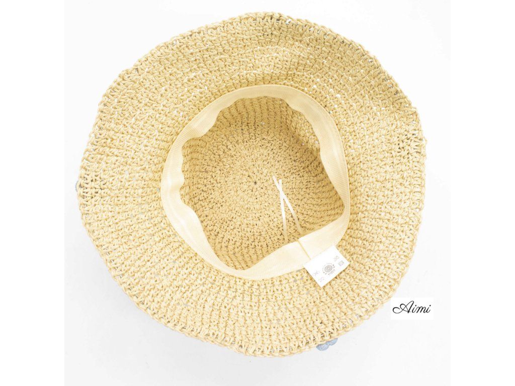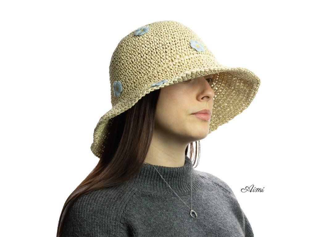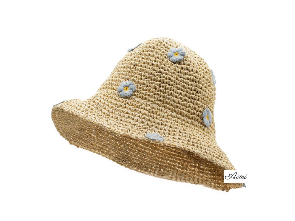 Slamený Klobúk Floppy - Béžový a Modré Kvety