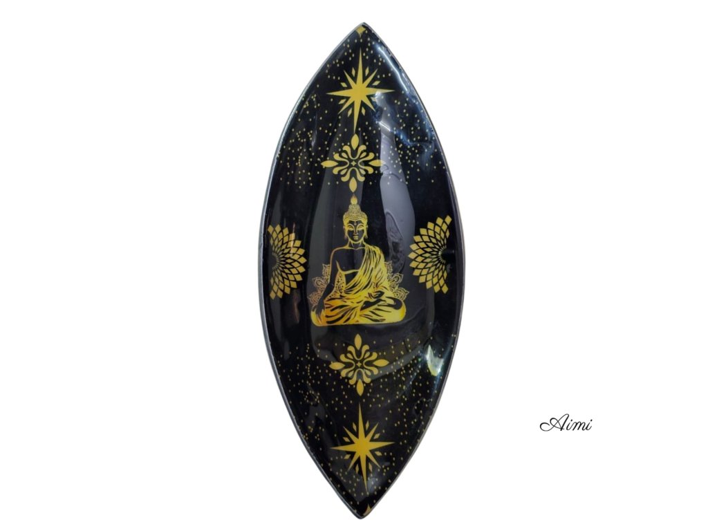 Smaltovaná Miska na Vonné Tyčinky - Hliníková - Zlatý a Čierny Budha