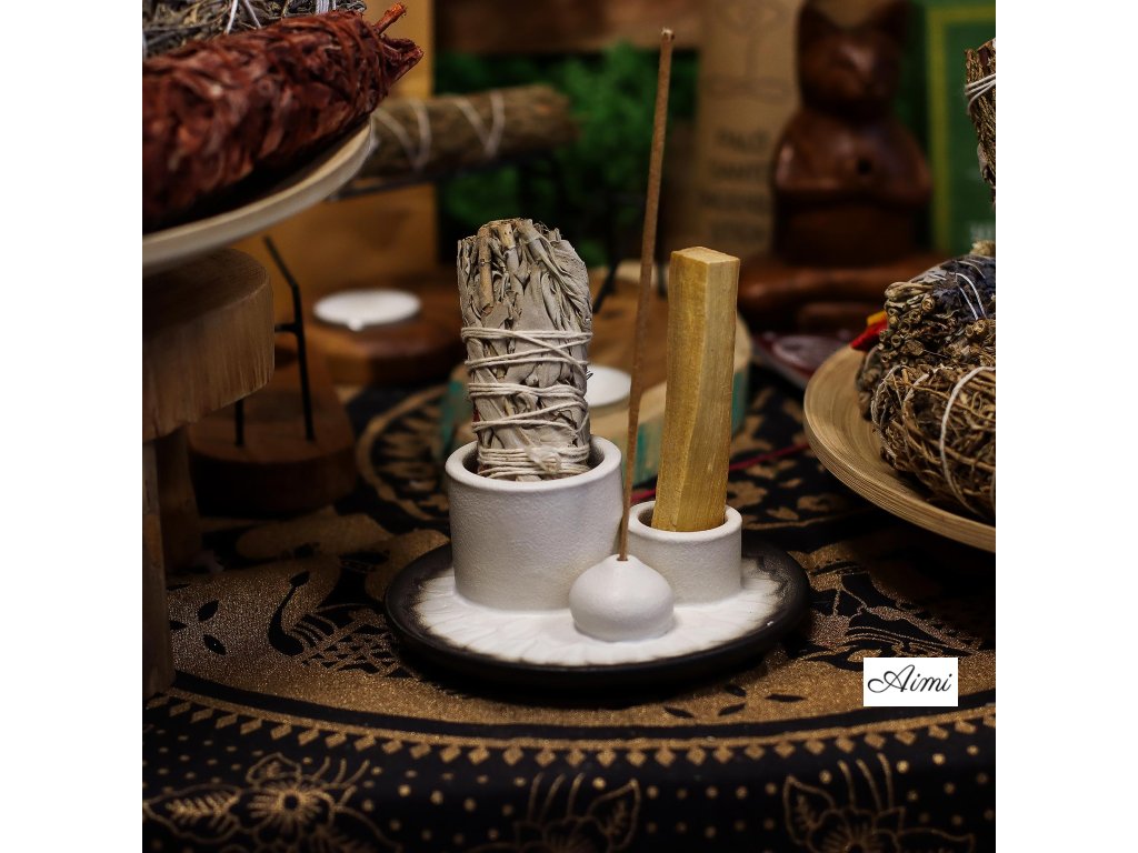 Navrhnutý na uloženie Palo Santo, očistných zväzkov a vonných tyčiniek, spája praktickosť s dekoratívnym pôvabom. Prepracovaný mandalový vzor vyžaruje pokoj a sústredenie, zatiaľ čo čistý kontrast bielej a sivej dodáva moderný nádych, ktorý sa hodí do súčasných interiérov.