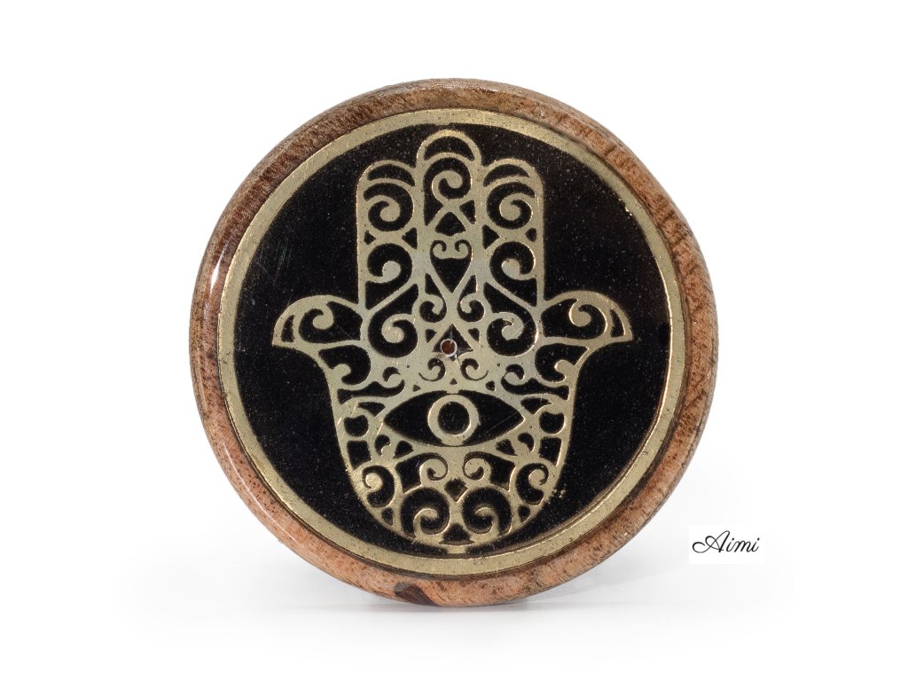 Stojan na Vonné Tyčinky - Zlatý a Čierny na Mangovom Dreve - Hamsa