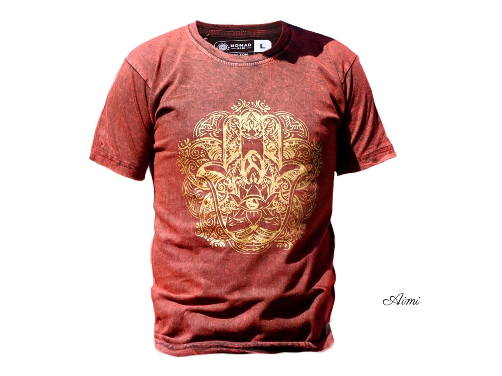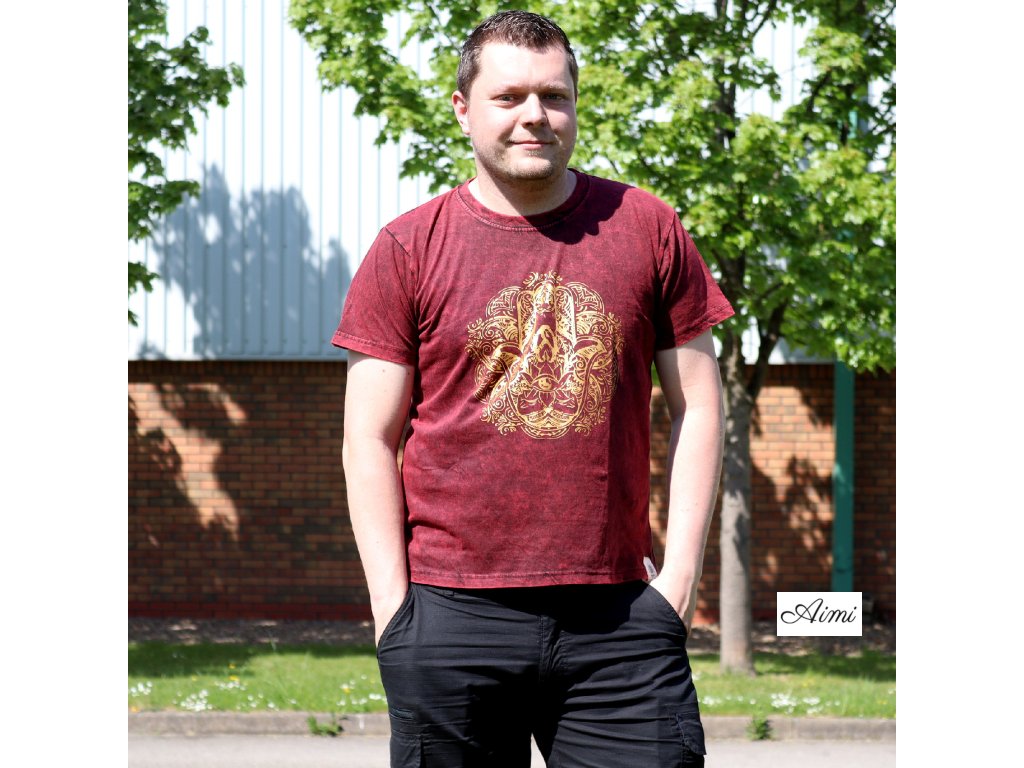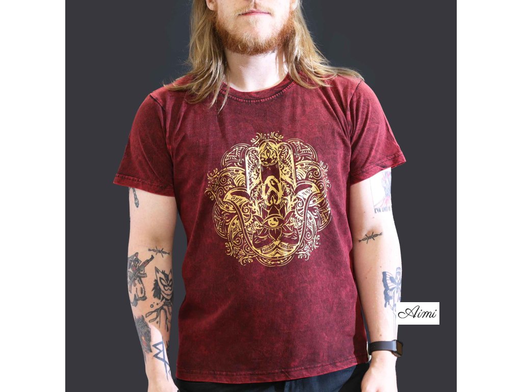 Stone Wash Tričko (L) - Hamsa - Gaštanovo Hnedé