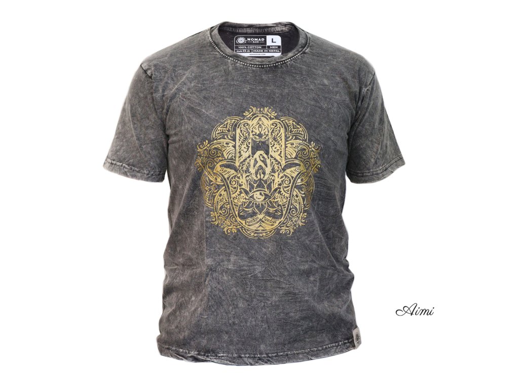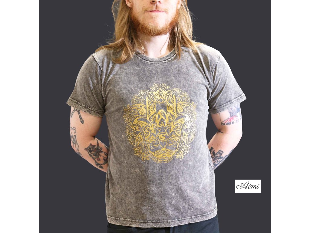Stone Wash Tričko (L) - Hamsa - Tmavo Šedé