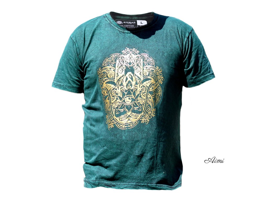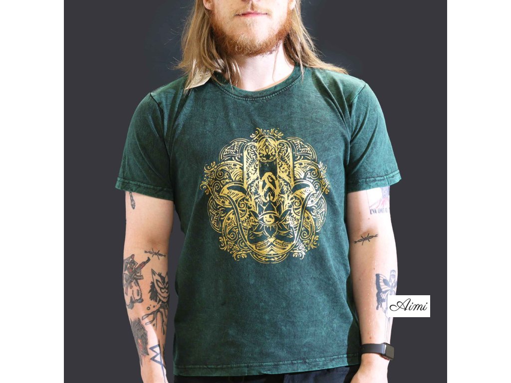 Stone Wash Tričko (L) - Hamsa - Zelené