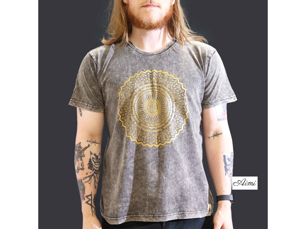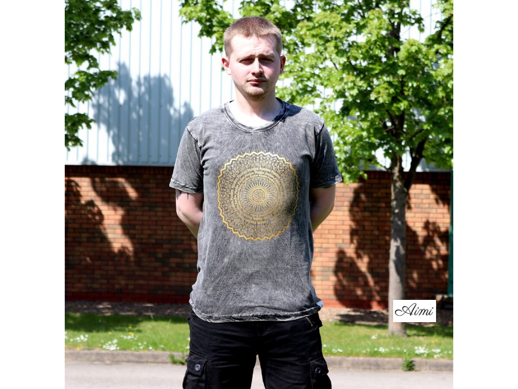 Stone Wash Tričko (L) - Mandala - Tmavo Šedé