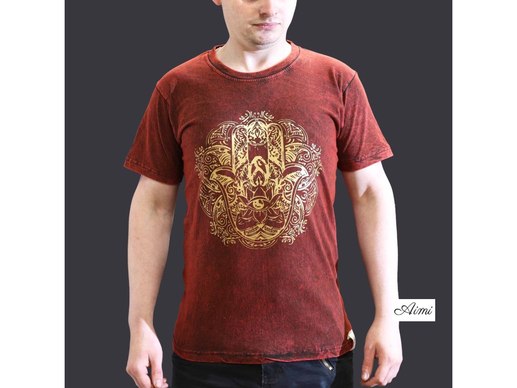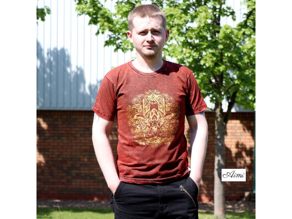 Stone Wash Tričko (M) - Hamsa - Gaštanovo Hnedé