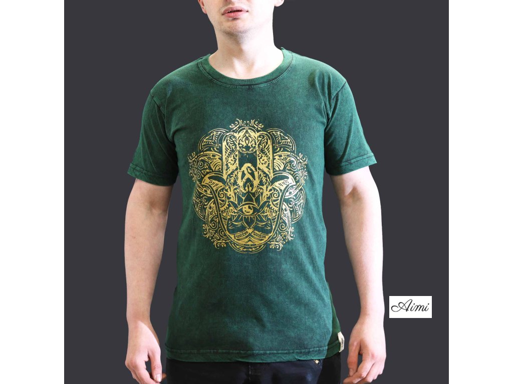 Stone Wash Tričko (M) - Hamsa - Zelené