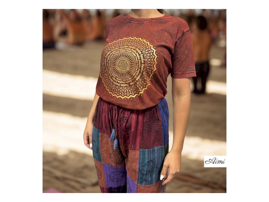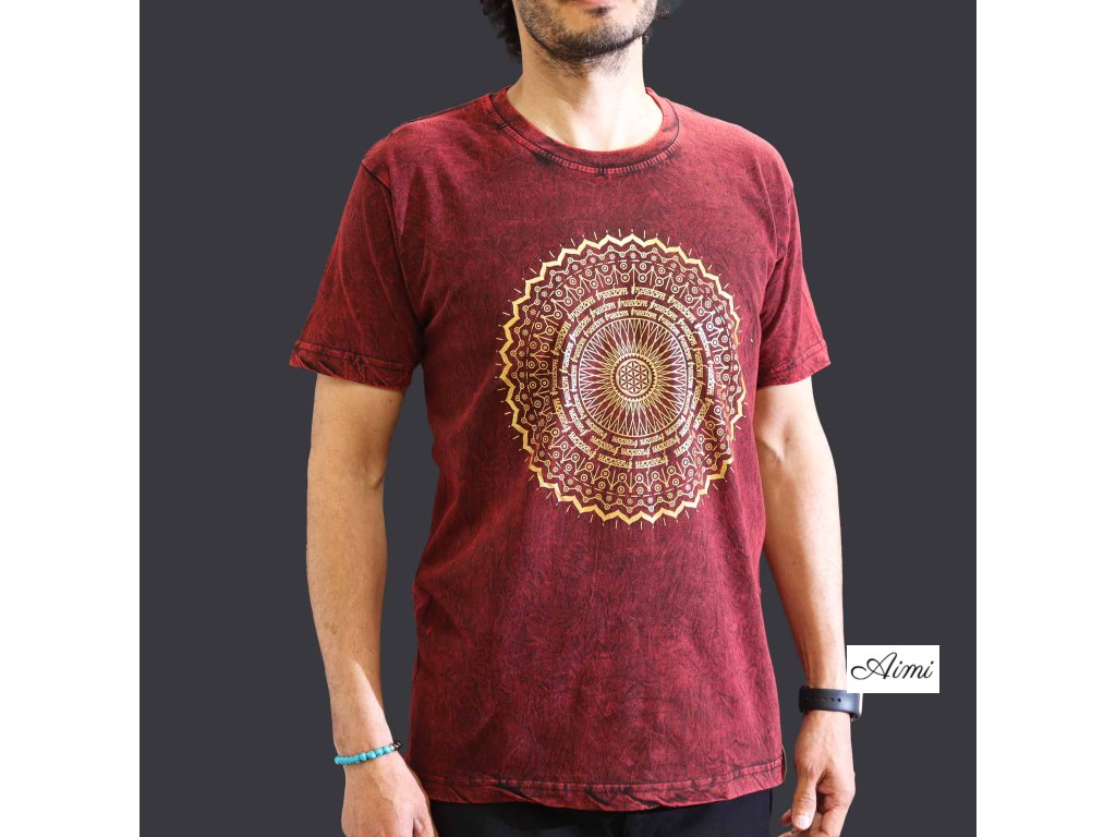 Stone Wash Tričko (M) - Mandala - Gaštanovo Hnedé