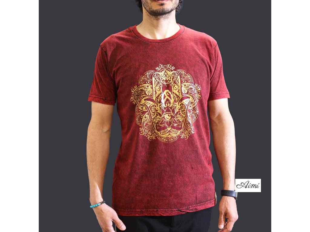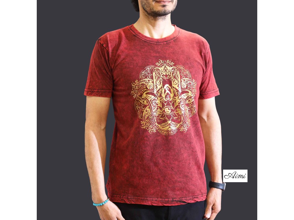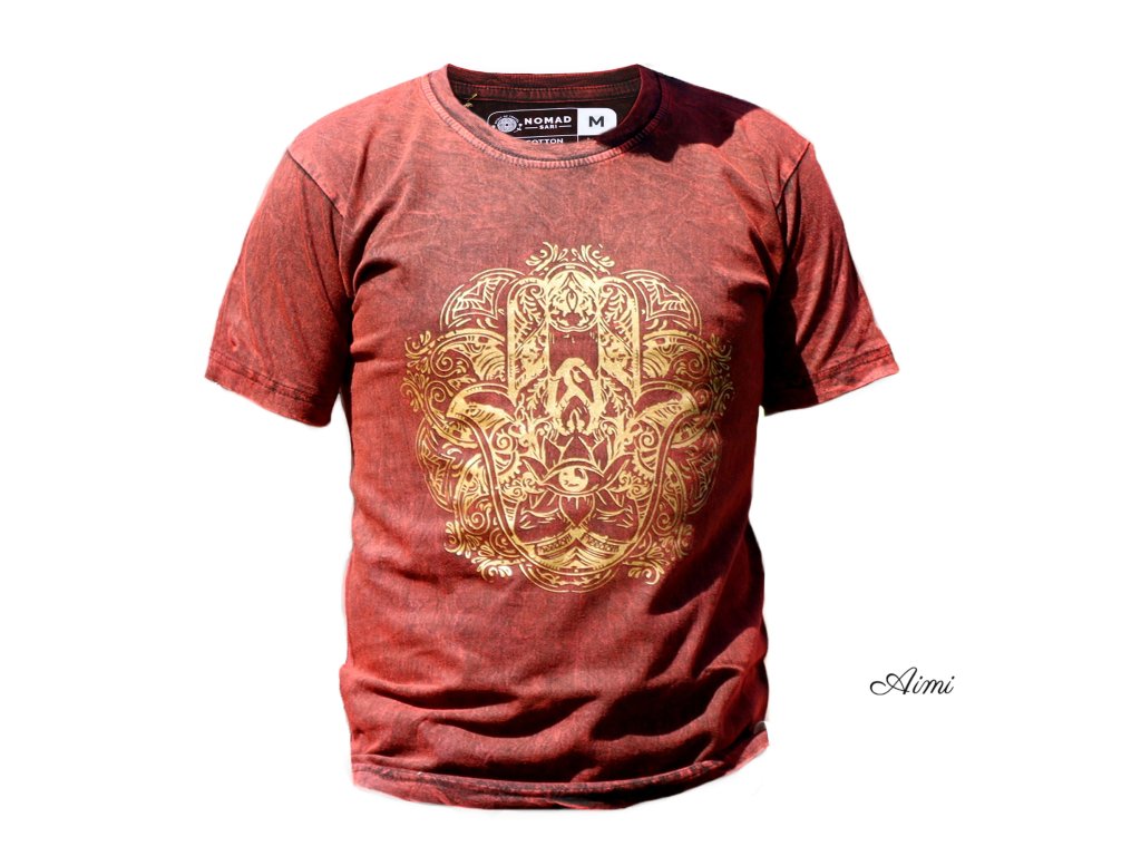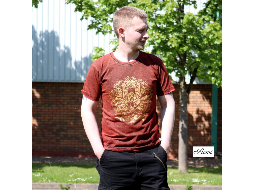 Stone Wash Tričko (S) - Hamsa - Gaštanovo Hnedé