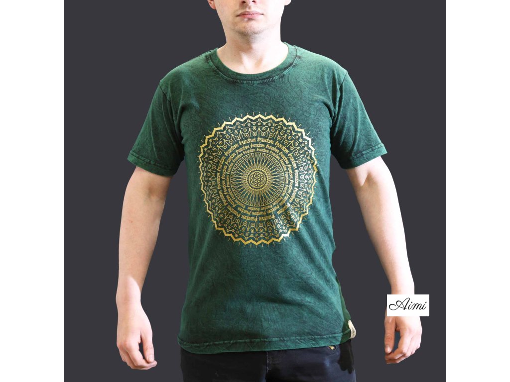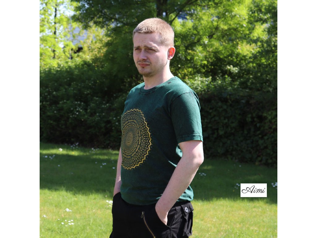 Stone Wash Tričko (S) - Mandala - Zelené