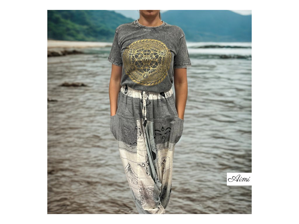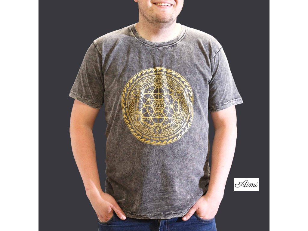 Stone Wash Tričko (XL) - Čakra - Tmavo Šedé