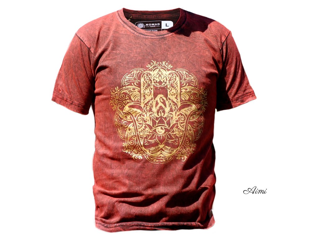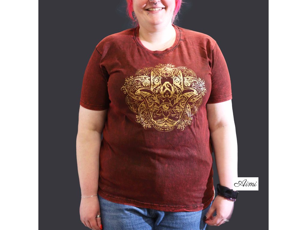 Stone Wash Tričko (XL) - Hamsa - Gaštanovo Hnedé