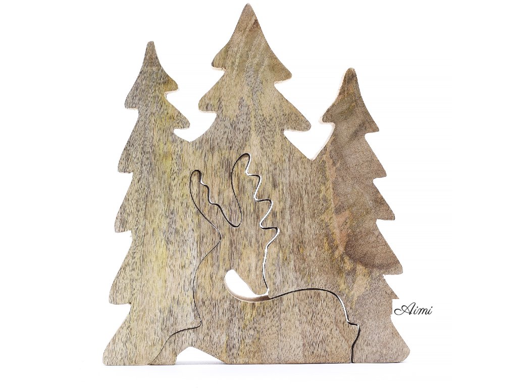 Stratený v Lese - Drevená 3D Dekorácia Jeleň v Lese - 23x20cm