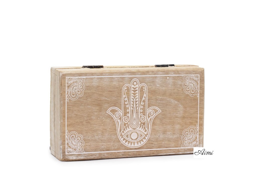 Stredná Štvorcová Krabička 17x10x4.2cm - Hamsa Biela Vymývaná