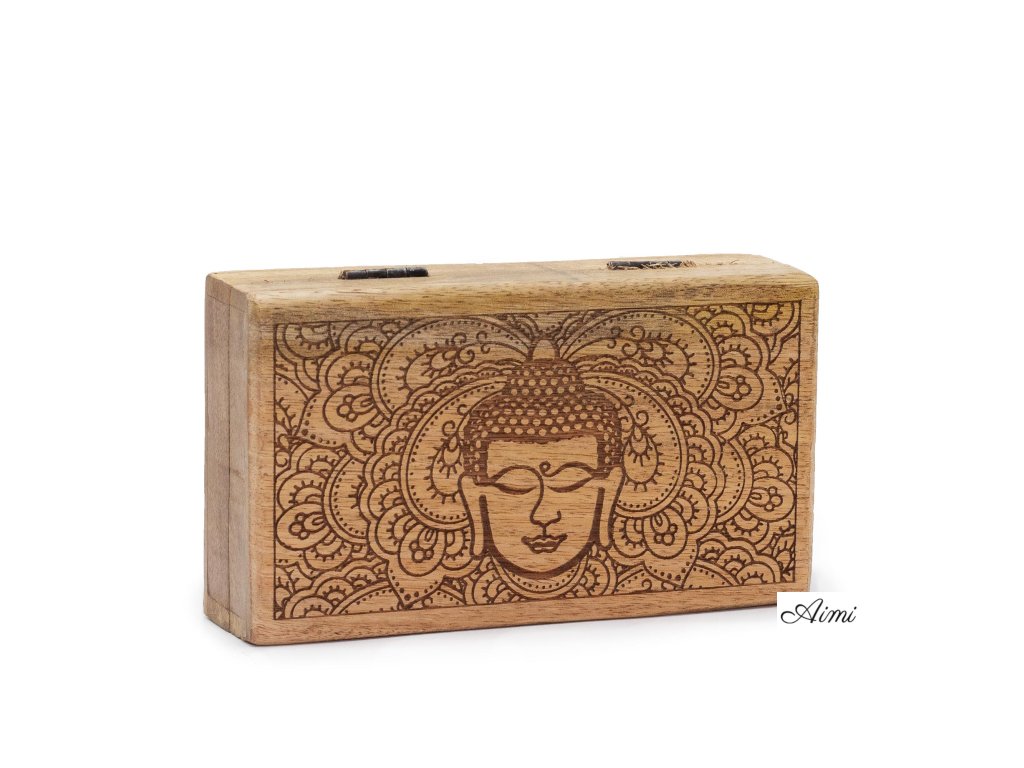 Stredná Štvorcová Krabička 17x10x4.2cm - Tvár Budhu Čierne Gravírovanie
