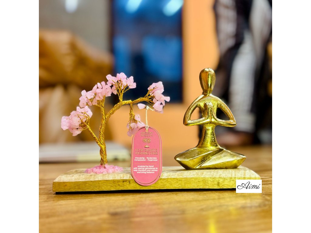 Stromček Šťastia s Joga Figúrkou na Mangovom Dreve - Ruženín - Pozdrav Namaste – 100 Kamienkov