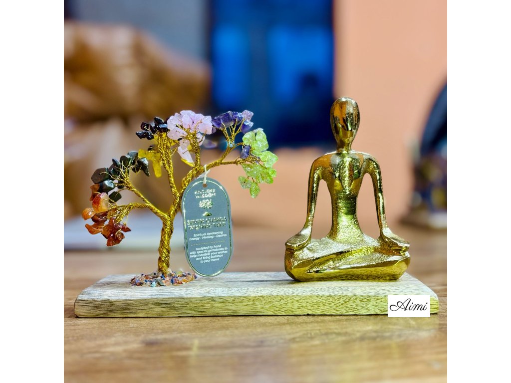 Stromček Šťastia s Joga Figúrkou na Mangovom Dreve - Sedem Čakier- Póza Mudry – 100 Kamienkov