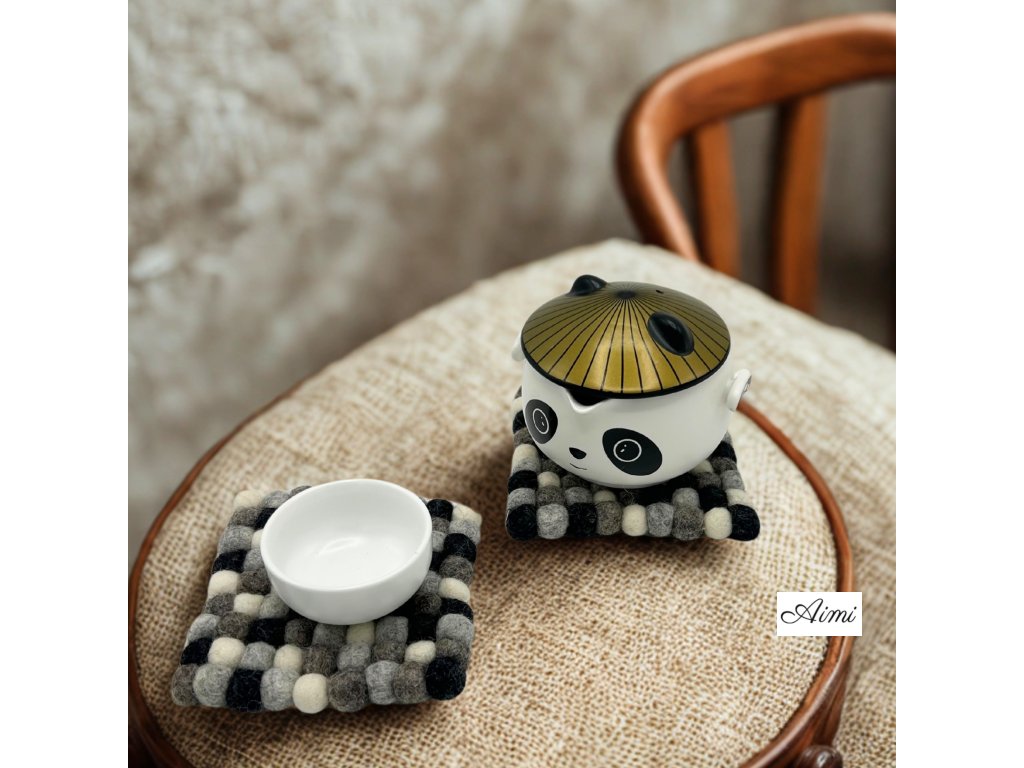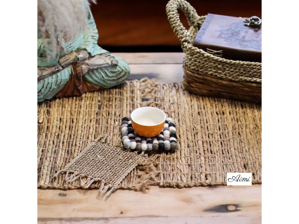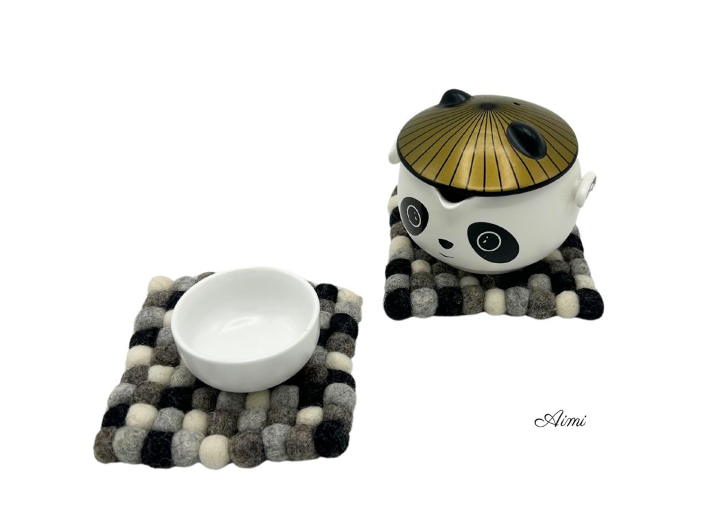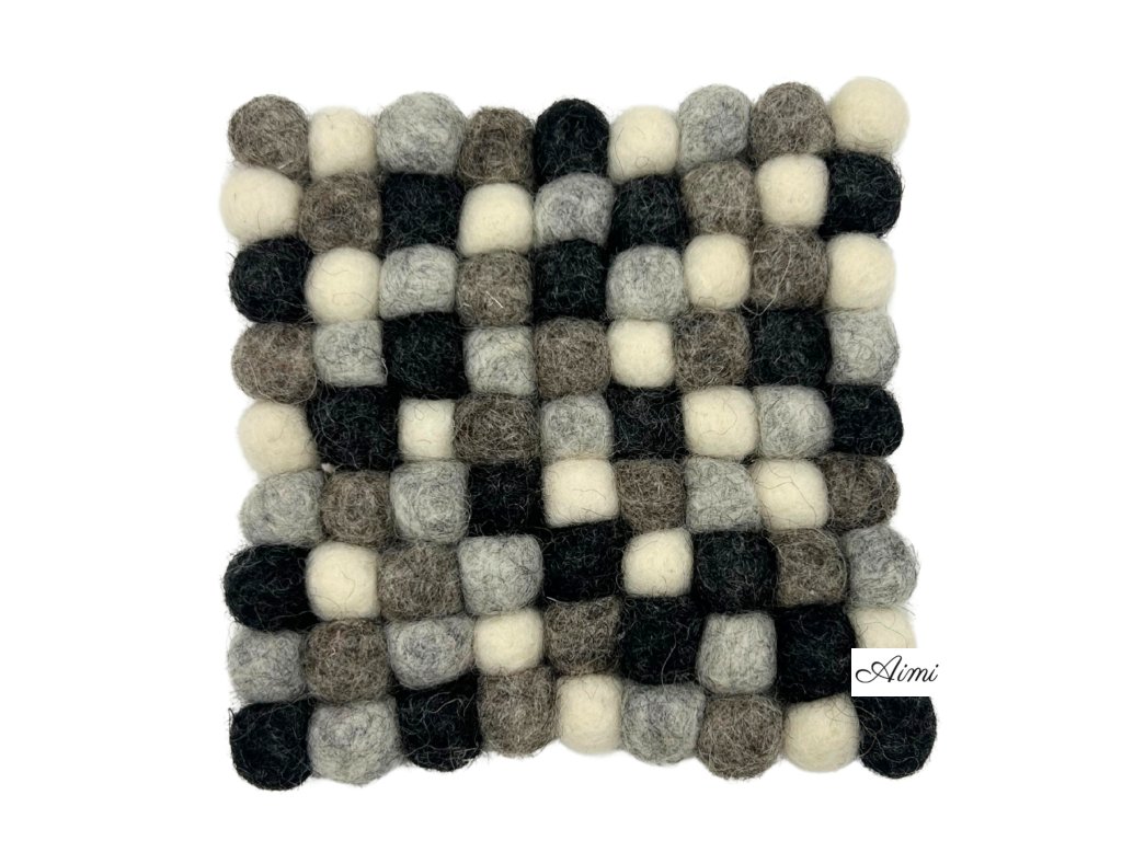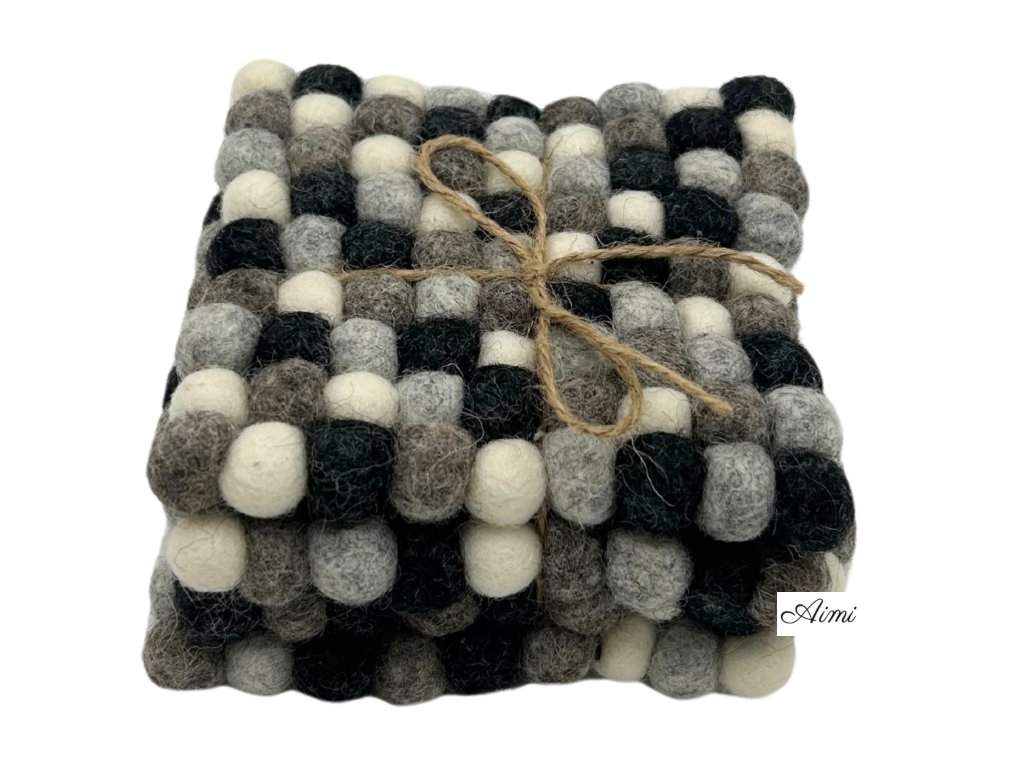 Štvorcové Podložky pod Poháre z Plstených Guľôčok - 10cm Viacfarebné Sivá Farba (sada 4 kusov)