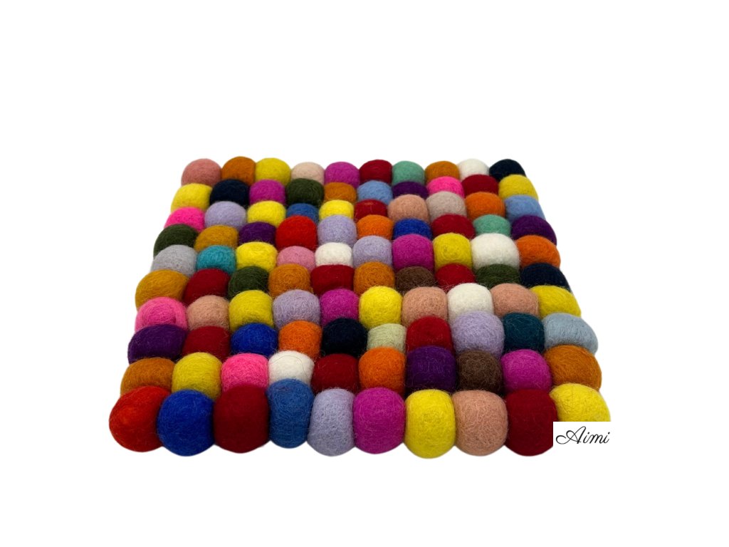 Štvorcové Podložky pod Poháre z Plstených Guľôčok - 20cm Viacfarebné