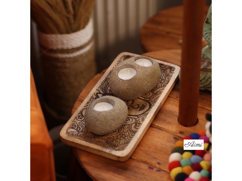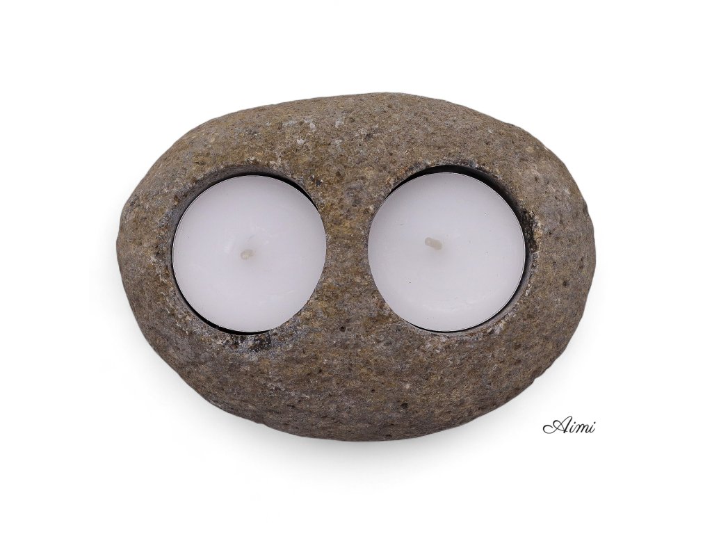 Svietnik z Prírodného Riečneho Kameňa - Dve Sviečky (približne 16x11x8cm)