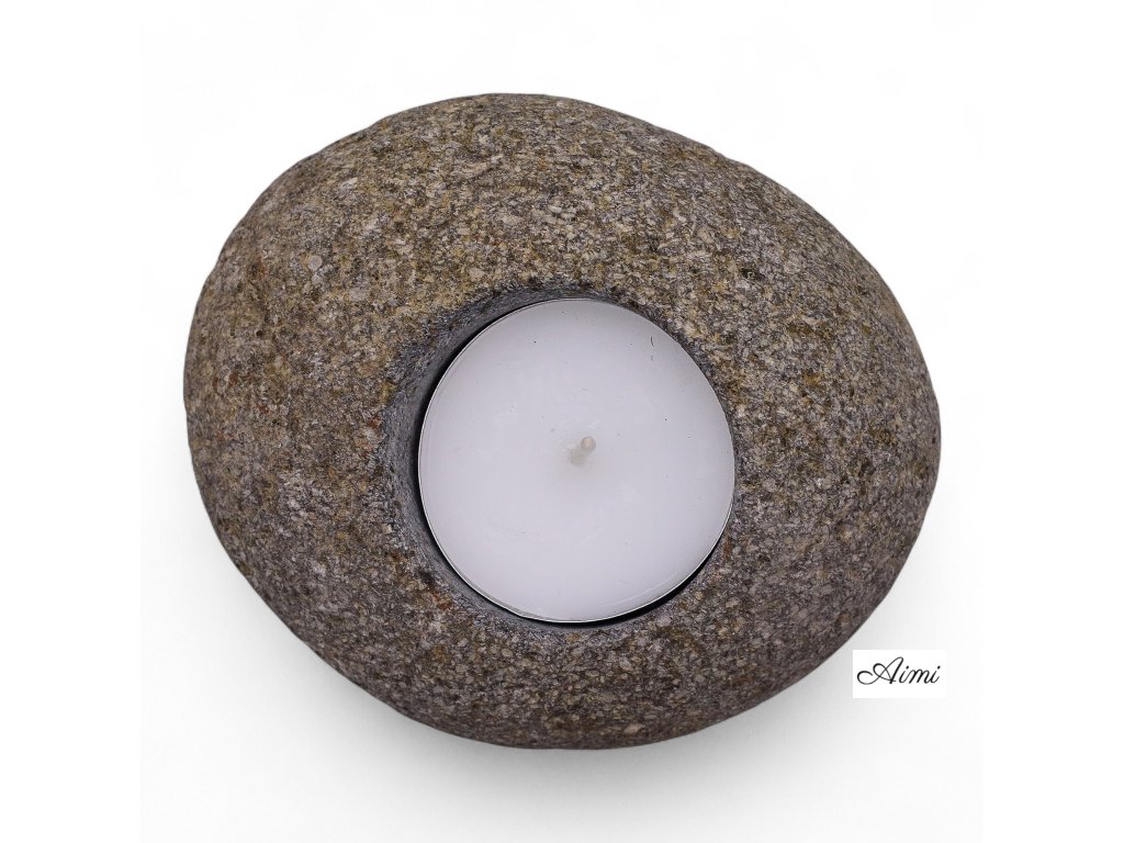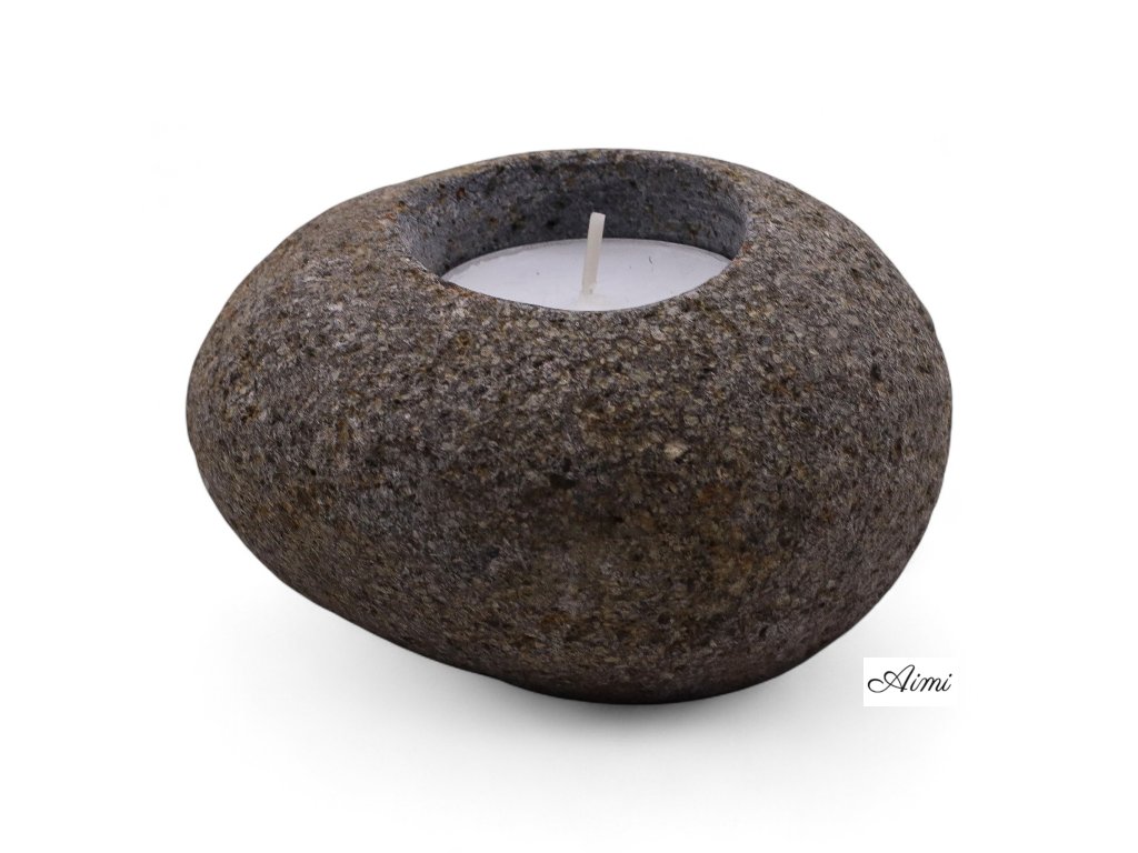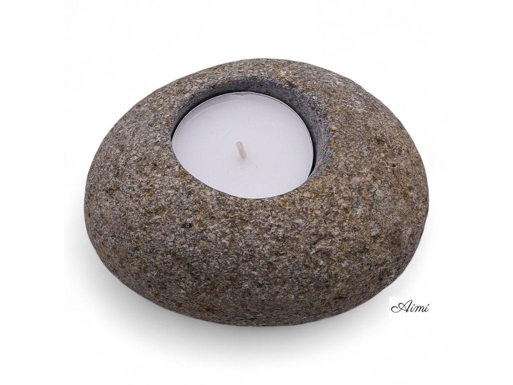 Svietnik z Prírodného Riečneho Kameňa - Jedna Sviečka (približne 10x10x7cm)