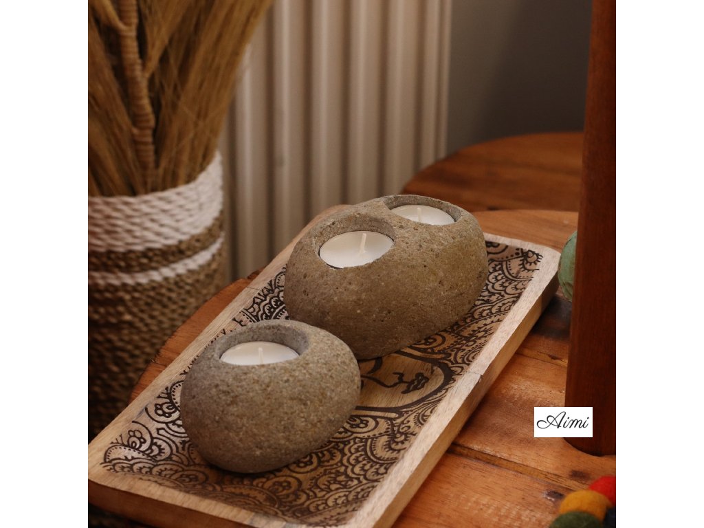 Vyrobený z pravých riečnych kameňov v Indonézii, každý jednotlivý svietnik na čajovú sviečku oslavuje krásu prírody v jej najčistejšej podobe. Organická štruktúra, jemné farebné odtiene a zaoblený tvar robia z každého kusu jedinečný originál.