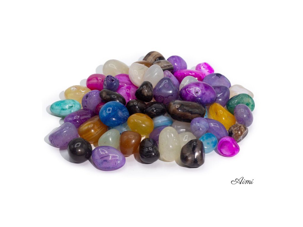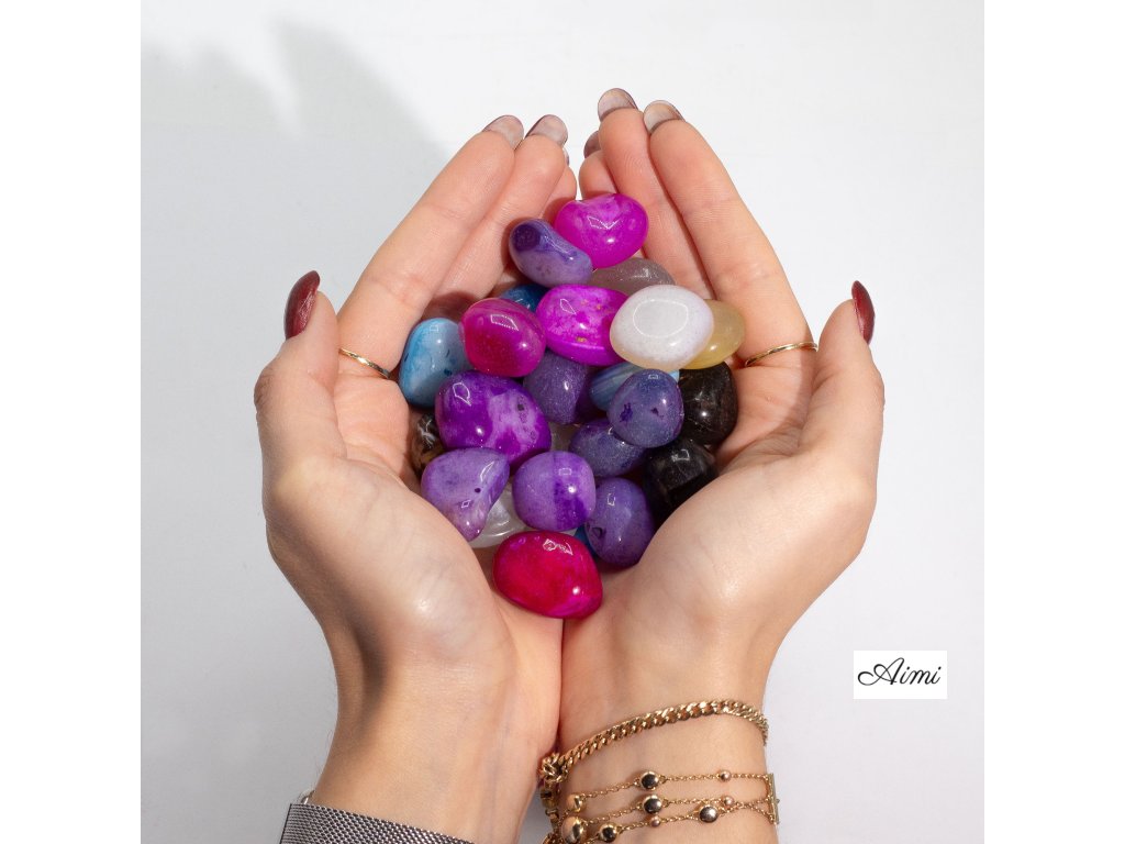 Tento farebne upravený mix achátov patrí medzi najpredávanejšie produkty pre predajcov, ktorí majú radi výstavy plné farby a textúry. Každý kameň je vyleštený a ošetrený tak, aby vynikla typická pásikavá štruktúra achátu – vďaka čomu má každý kus jedinečný a výrazný charakter.