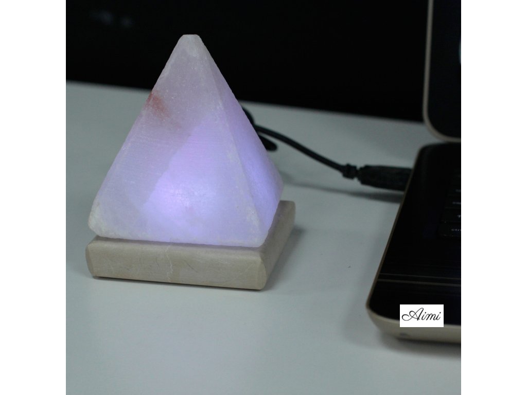 USB Biela Soľná Lampa Viacfarebná - Pyramída 9 cm