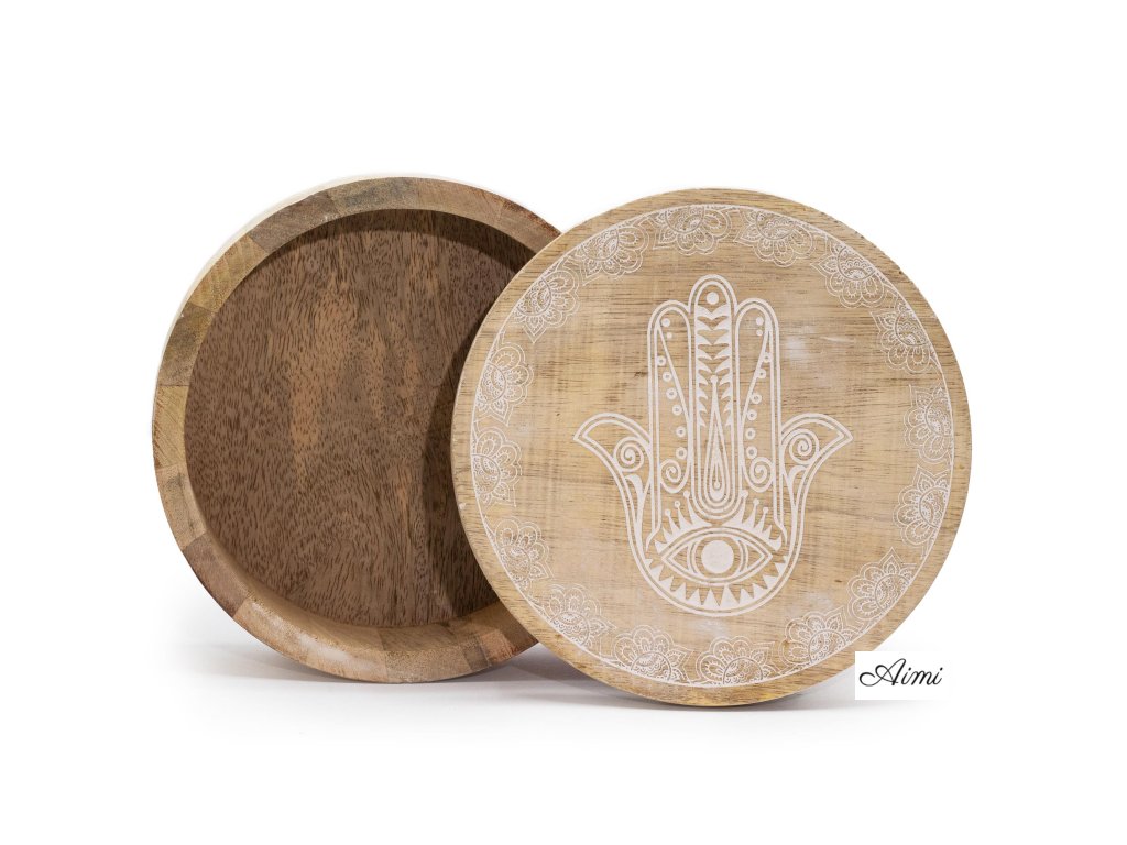 Veľká Okrúhla Krabička 17.5x7.5cm - Hamsa Biela Vymývaná