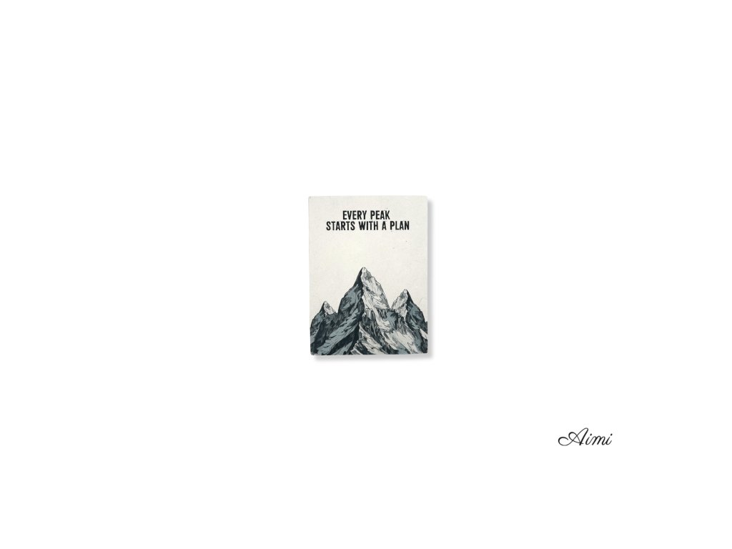 Navrhnutý pre snílkov, činorodých ľudí a dobrodruhov – tento zápisník nesie minimalistický horský motív s nápisom „Každý vrchol začína plánom“. Silné posolstvo pre zákazníkov, ktorí si radi stanovujú ciele, píšu denníky alebo budujú nové návyky.