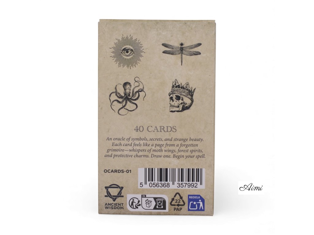 Každá karta obsahuje symbolické zobrazenia vo vintage štýle leptu, ktoré kombinujú okultné motívy, prírodné prvky a mystické umenie pripomínajúce stáročia staré grimoáre.