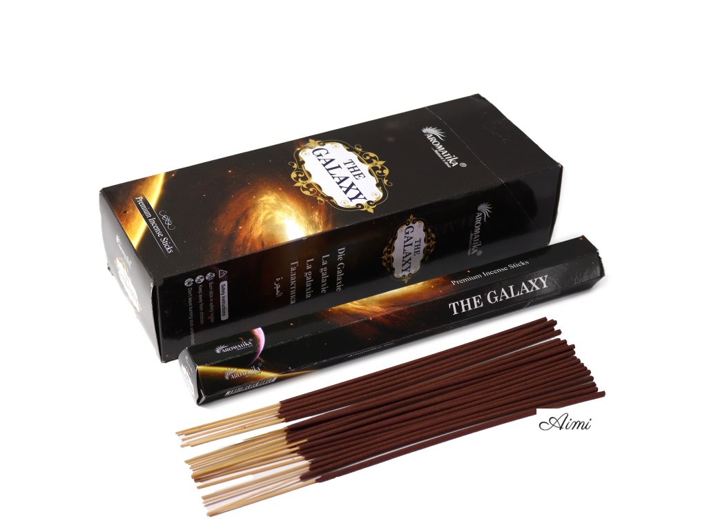 Vonné tyčinky Galaxia sú ručne vyrábané v Indii z prírodnej zmesi drevného prášku, joss prášku, živíc, gúm a esenciálnych olejov. Neobsahujú uhlie ani agresívne prísady, vďaka čomu poskytujú čisté a rovnomerné horenie vhodné na každodenné použitie.