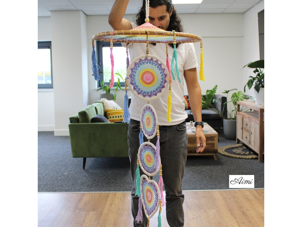 Extra Veľký Lapač Snov so Strieškou – Pastelová Dúha
