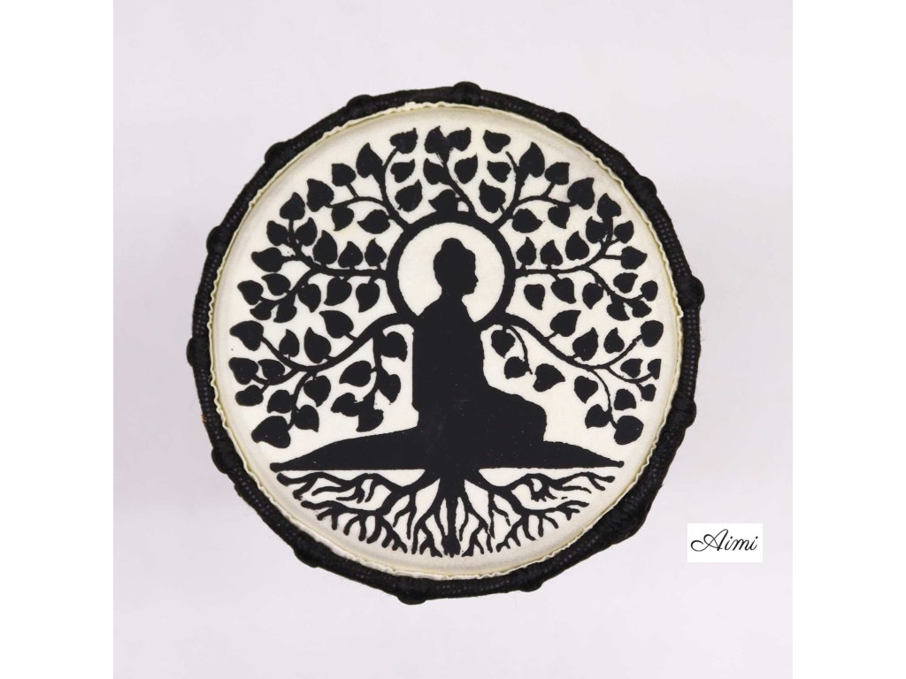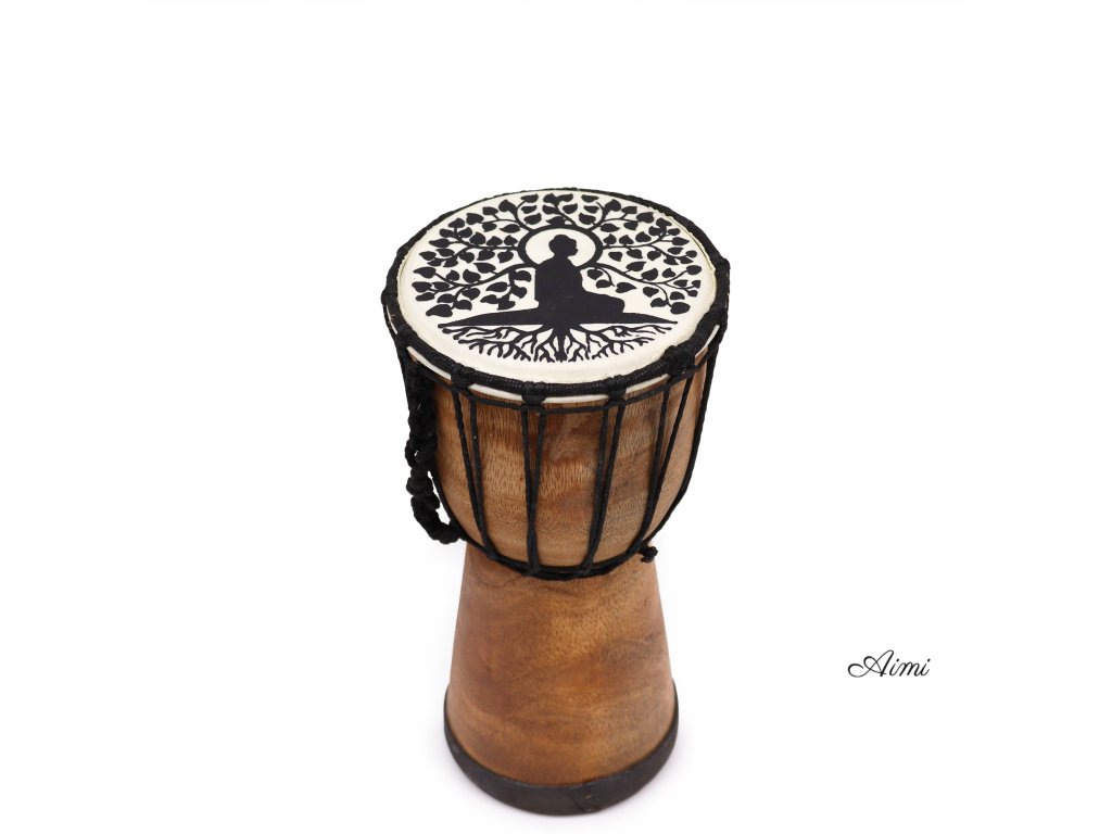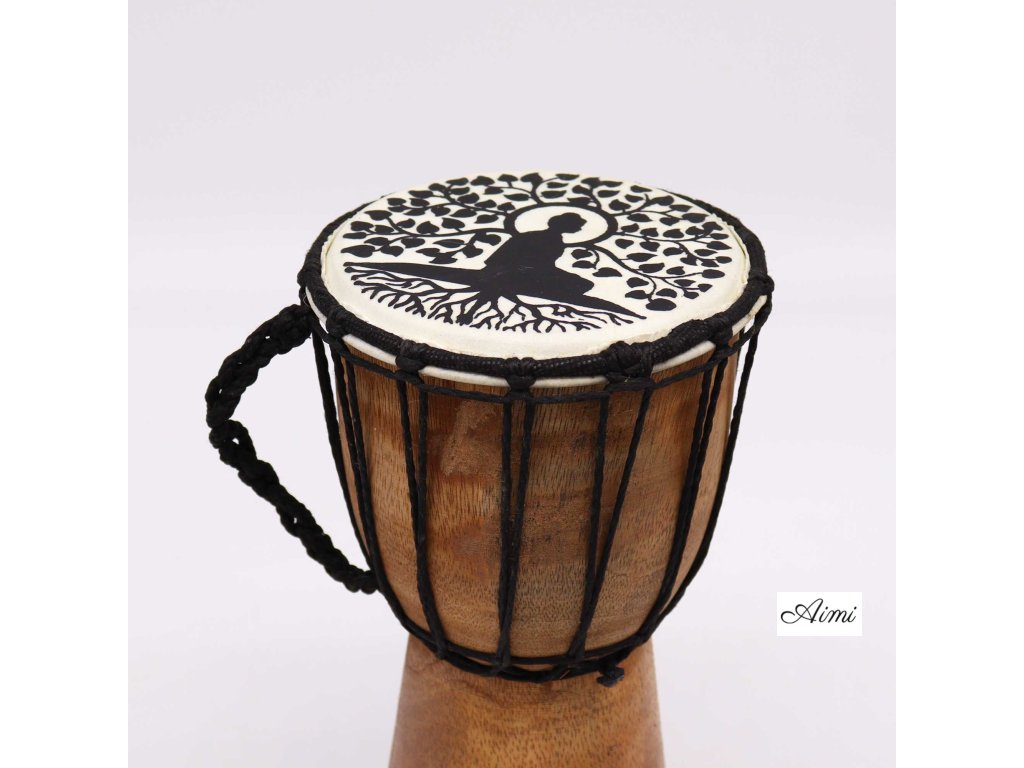 Ručne Vyrobený Bubon Djembe 25 cm s dizajnom Buddhu na koži je výrazný a kultúrou inšpirovaný bubon, ktorý spája bohaté hudobné tradície západnej Afriky s duchovnou a umeleckou symbolikou budhizmu. Má predĺženú hornú časť, ktorá poskytuje širokú hraciu plochu a zvyšuje rezonanciu nástroja.