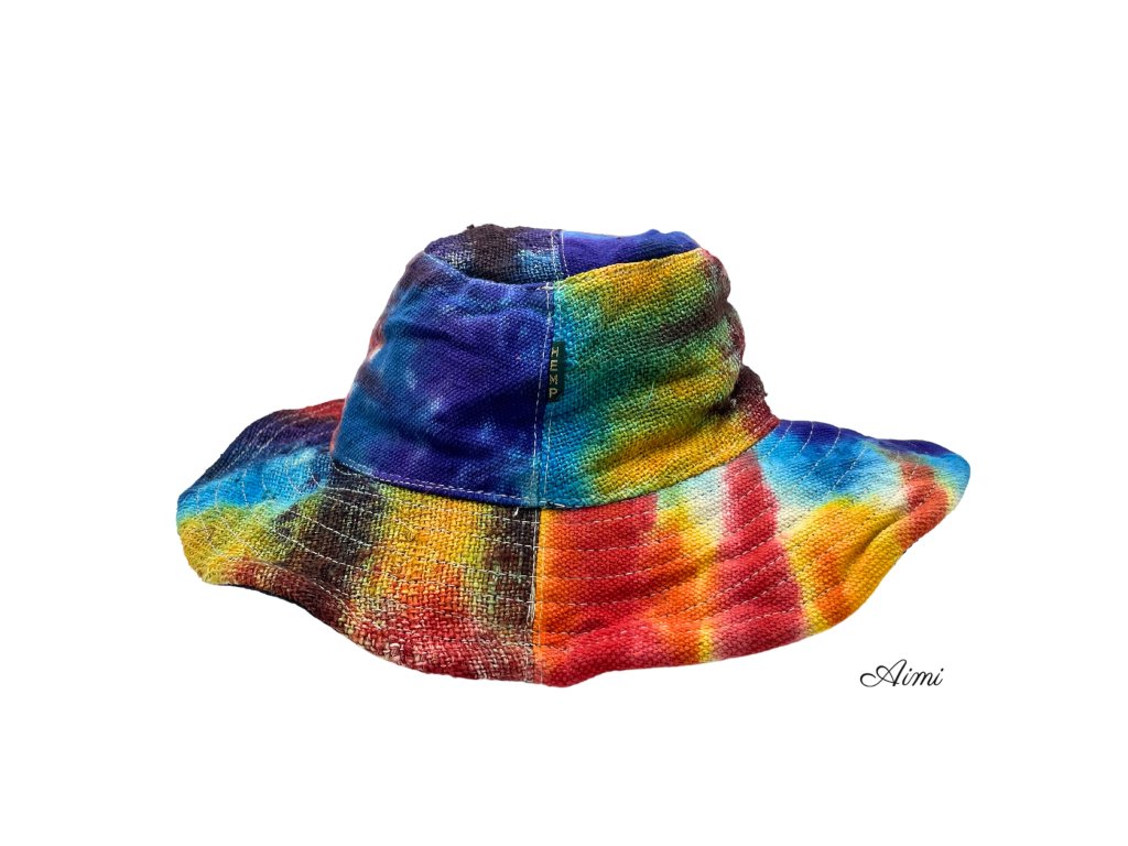 Záplatovaný a Drôtený Klobúk z Konope a Bavlny Boho Festival - Tie Dye