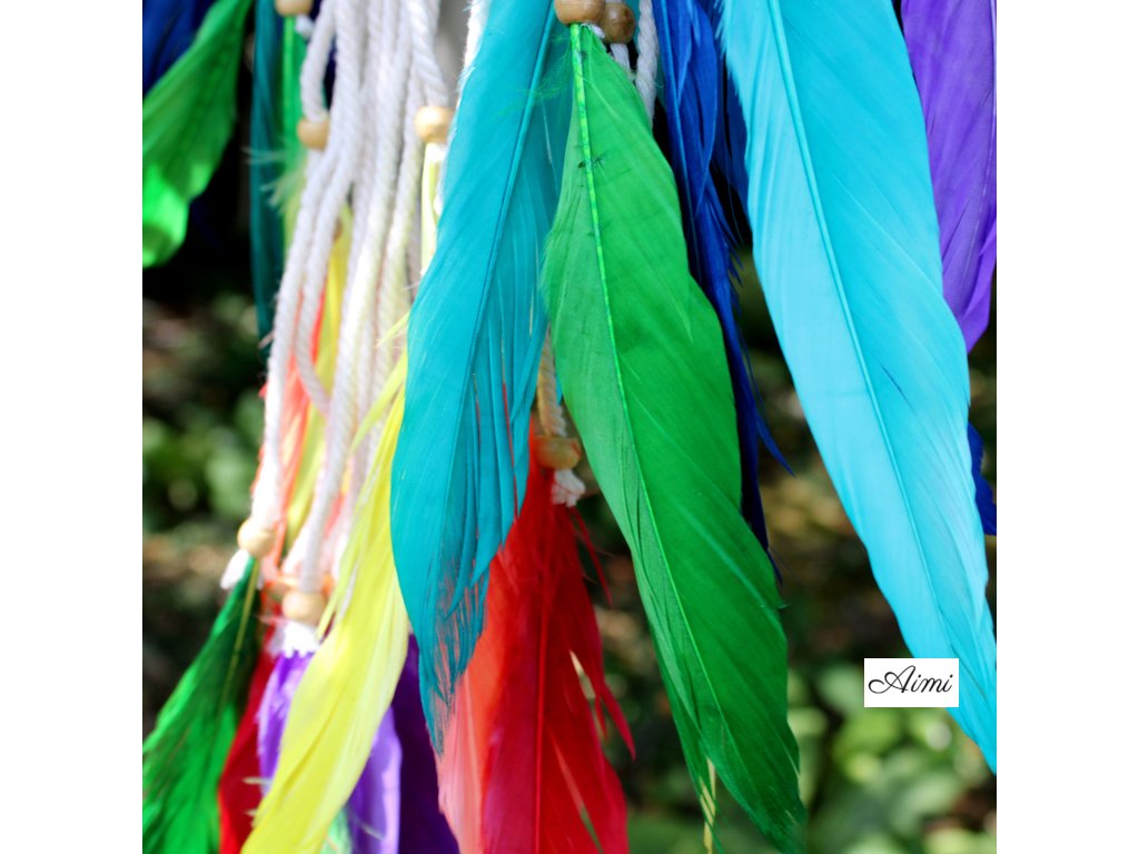 | Materiály a ingredience | Synthetic suede, feathers and wooden beads |
