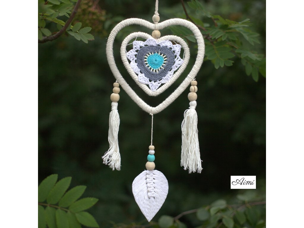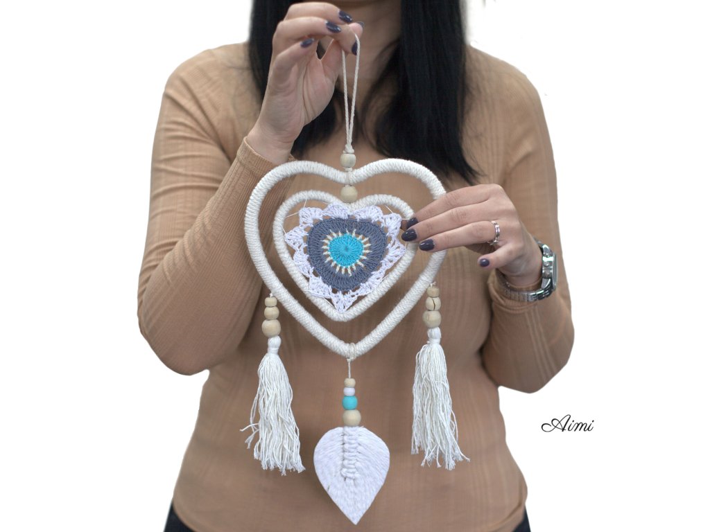 Veľkoobchodné Prírodné Lapače Snov - Modré Srdce v Srdci sú ručne vyrobené so starostlivosťou a láskou na Bali.