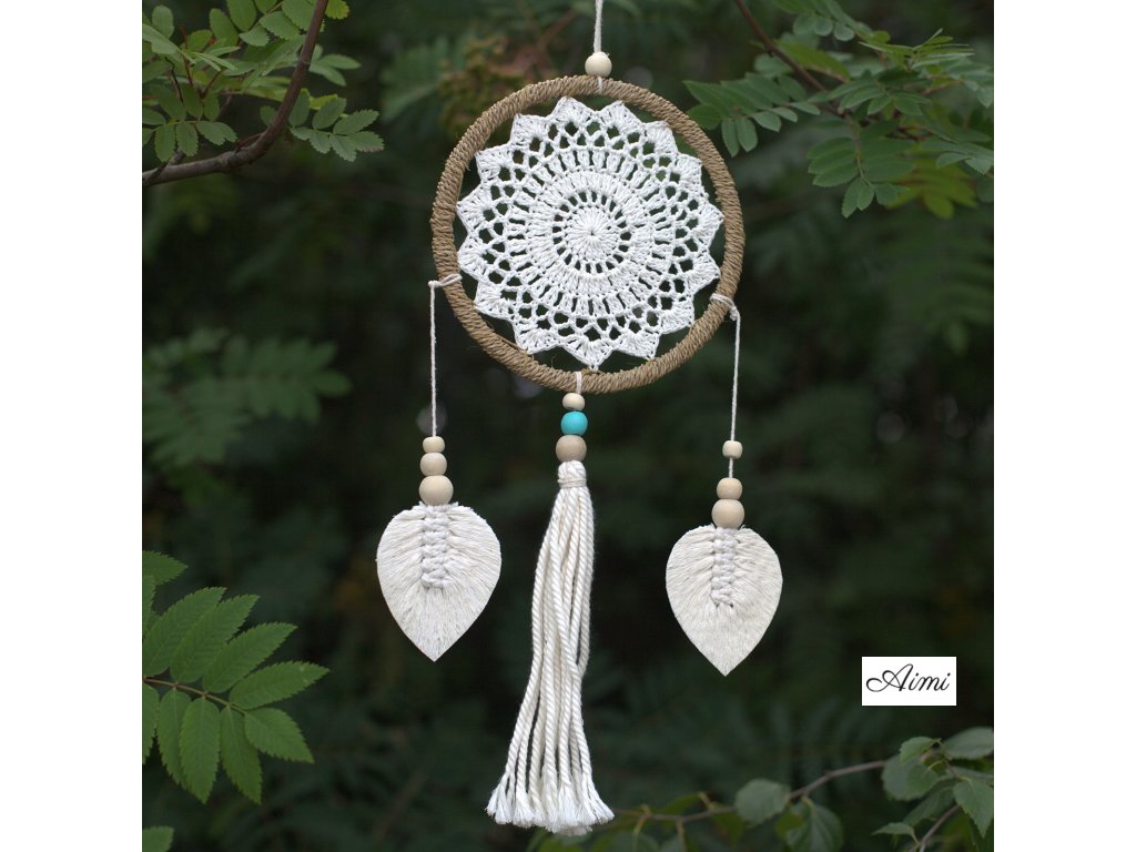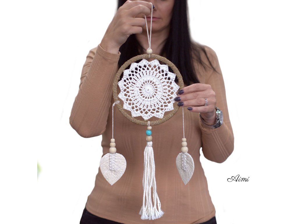 Veľkoobchodné Prírodné Lapače Snov - Prírodná Farba - Elementy sú ručne vyrobené so starostlivosťou a láskou na Bali.