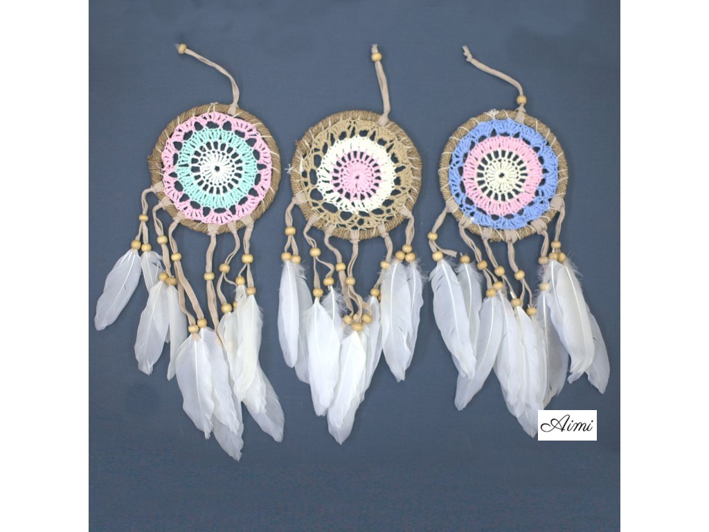 Veľkoobchodné Pastelové Lapače Snov 12 cm sú ručne vyrobené so starostlivosťou a láskou na Bali. Duchovia noci môžu priniesť dobré aj zlé sny. Dobré sny vedia, ako prechádzať lapačom snov, zlé sny nevedia, akonáhle sa dostanú do lapača tak sa tam zamotajú a uhynú s východom slnka. Na Bali sú miestni obyvatelia veľmi spirituálny, osvojili si lapače snov a obnovili ich moc. Vyrobené z bavlny a peria, balené po 6 kusov v najrôznejších farbách.