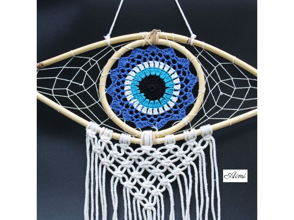 Kombinácia Lapača Snov a Evil Eye spája kúzlo oboch prvkov. Lapače snov sú veľmi obľúbené. Sú ručne vyrobené s detailmi macramé a rámom z prírodného ratanu.