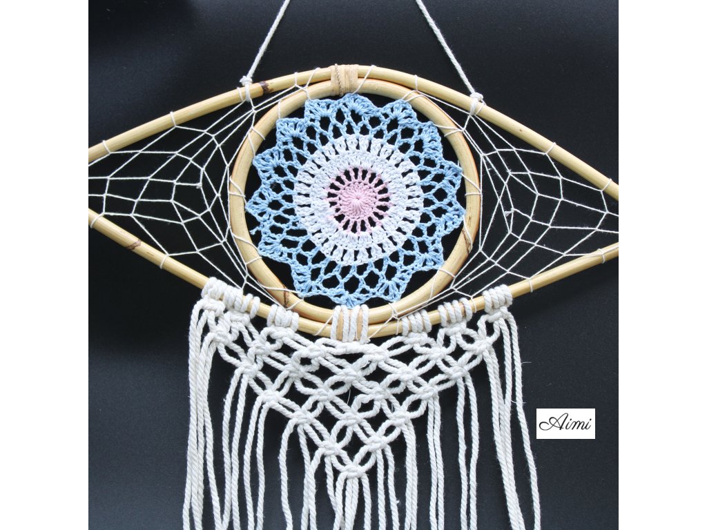 Kombinácia Lapača Snov a Evil Eye spája kúzlo oboch prvkov. Lapače snov sú veľmi obľúbené. Sú ručne vyrobené s detailmi macramé a rámom z prírodného ratanu.