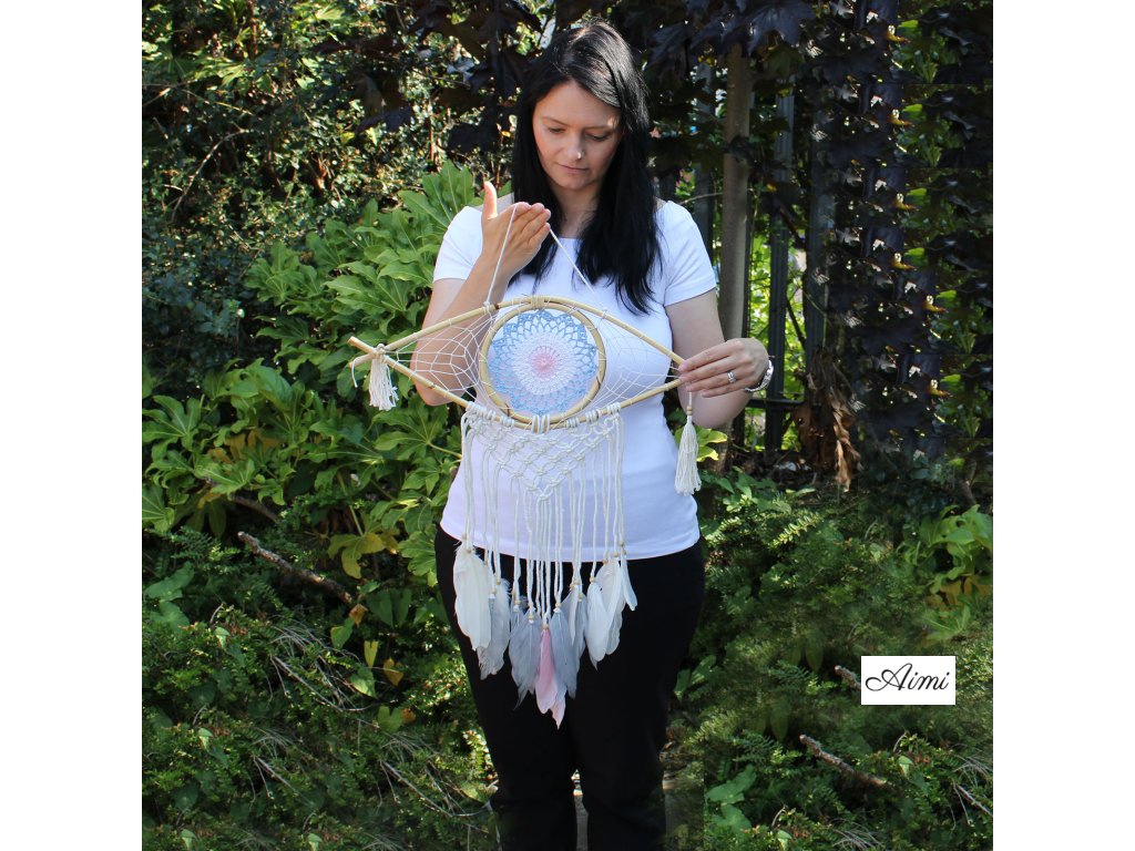 Ochranný Lapač Snov - Stredný - Macramé - Modrá / Biela / Ružová