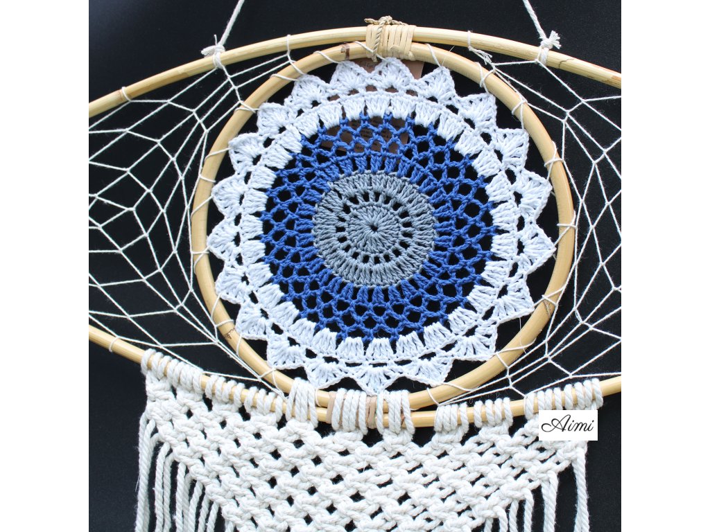 Ochranný Lapač Snov - Veľký - Macramé - Biela / Modrá / Šedá