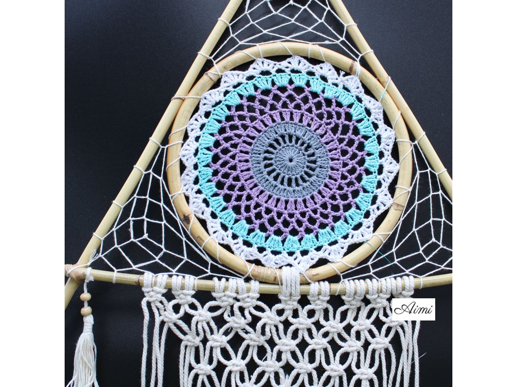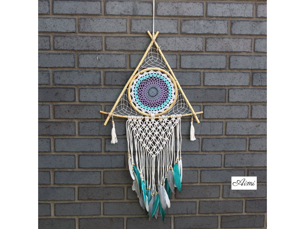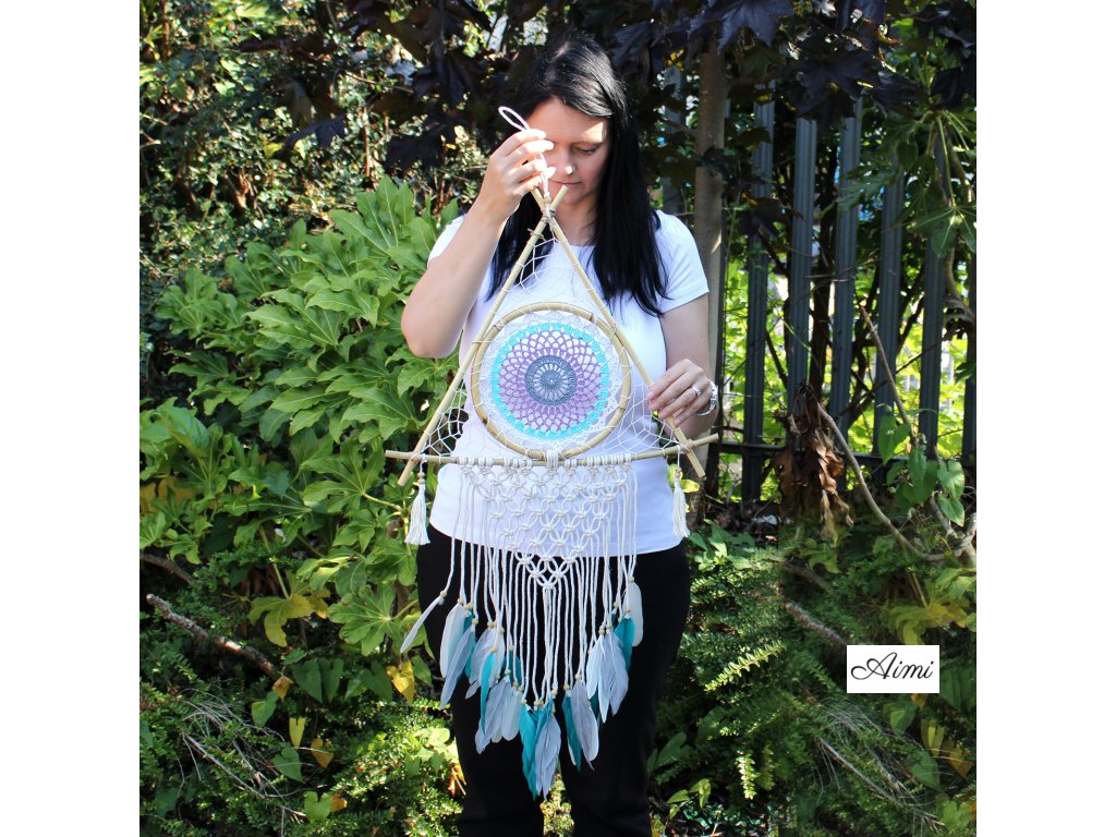 Ochranný Lapač Snov - Veľký - Macramé - Pyramída Biela/ Tyrkysová