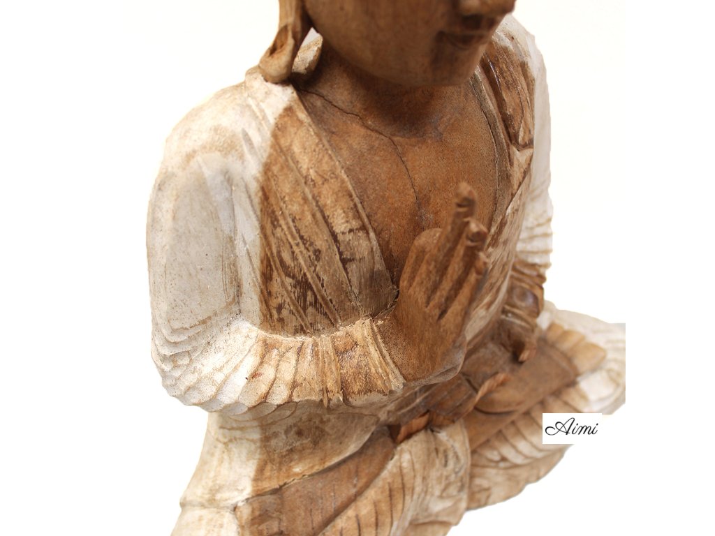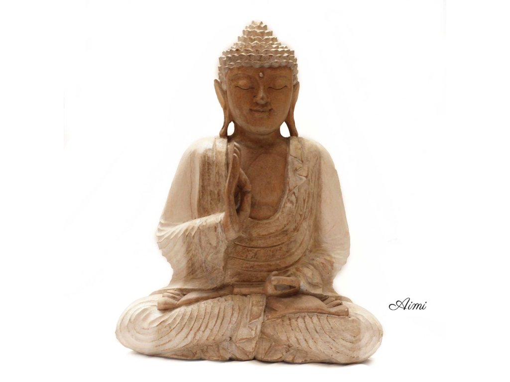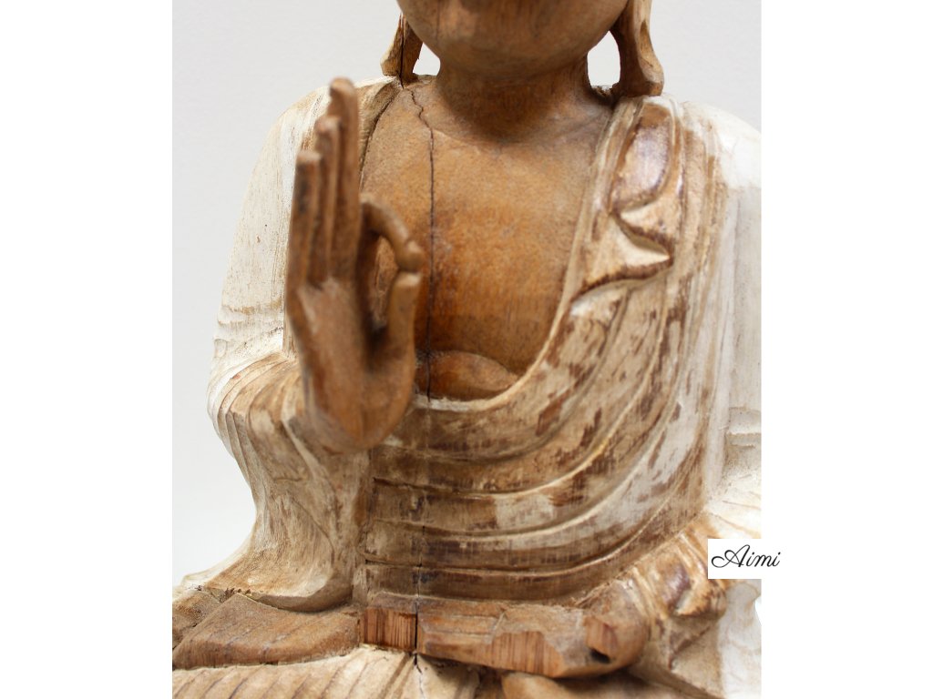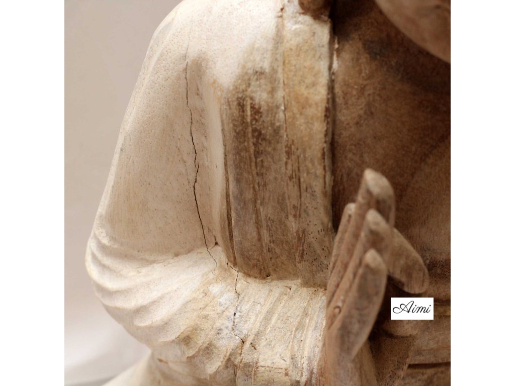 Ručne Vyrezávaná Socha Budhu - 40cm Prenos Výučby - Biela Vymývaná - Poškodená