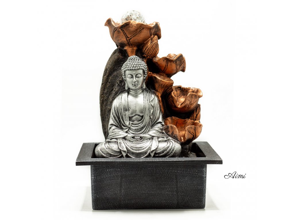 Stolová Fontánka - 35cm - Strieborná Budhova Kaskáda a Krištáľová Guľa