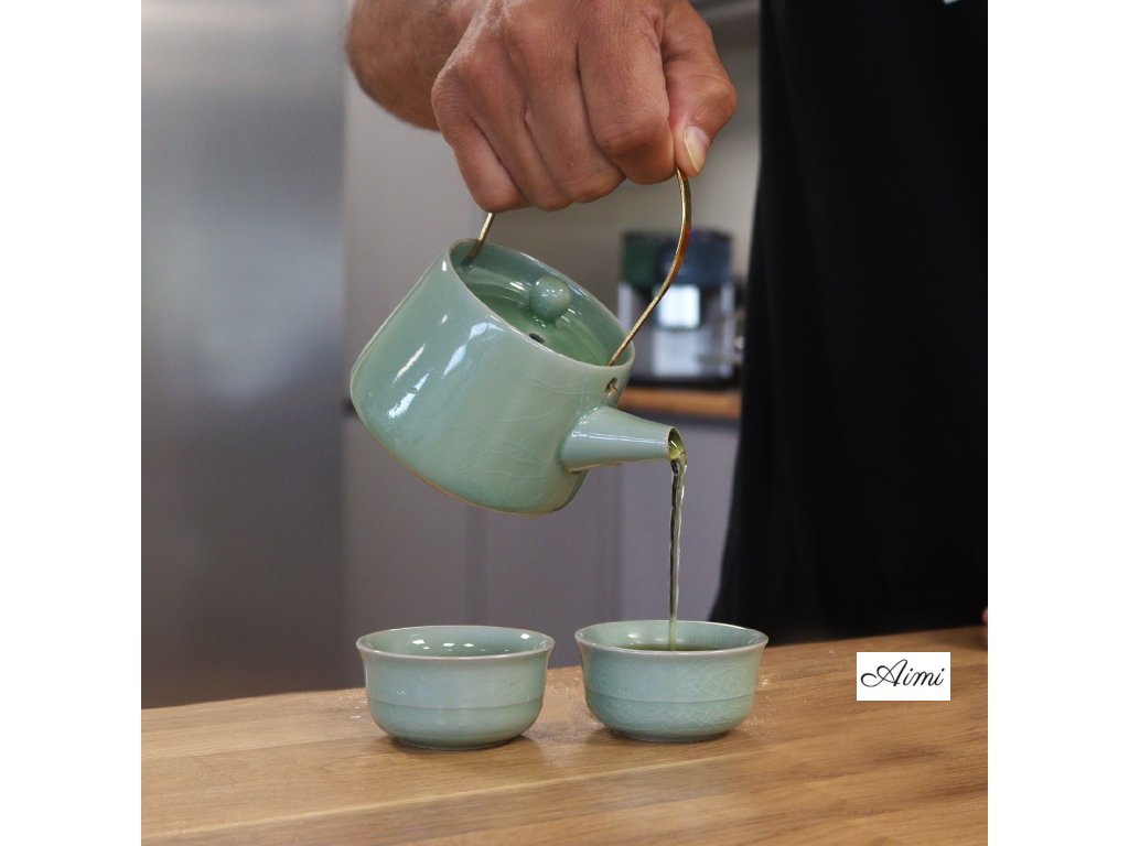 Bylinkový Svetlo Zelený Čajový Set - Čajník a Dve Šálky